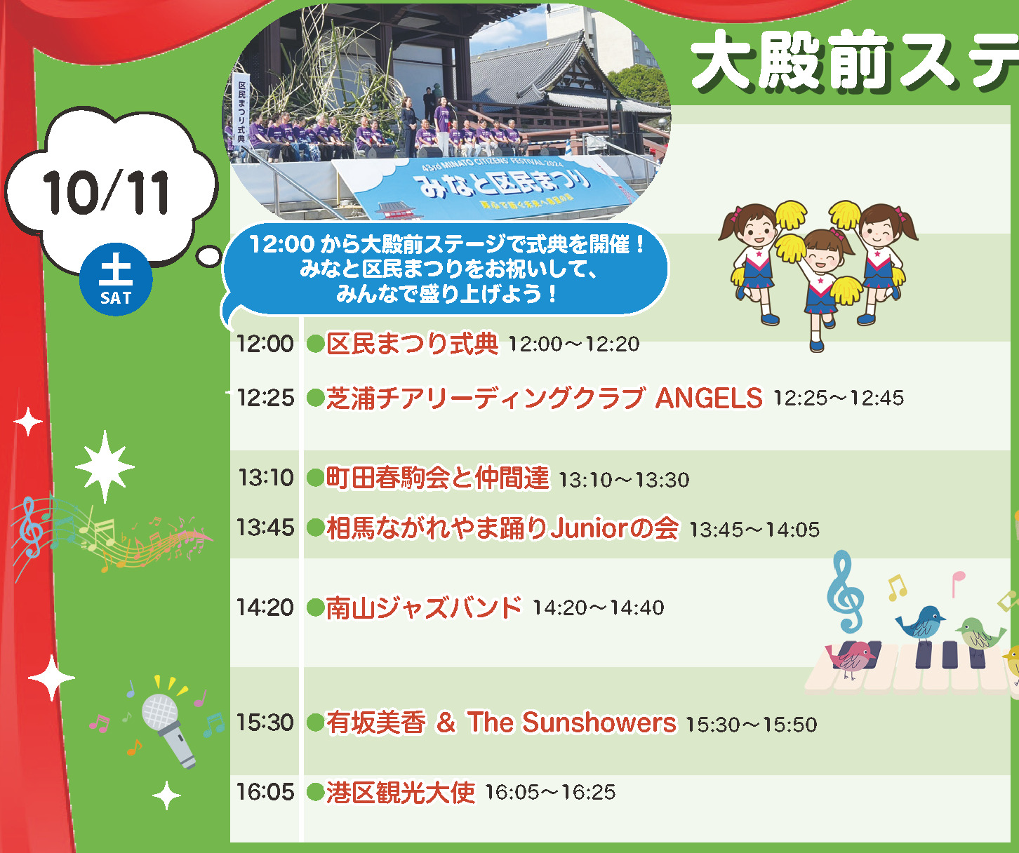 9/28は芝浦各所・港南3・浜松町竹芝・海岸の居住者は近いので、露店・ステージショー、