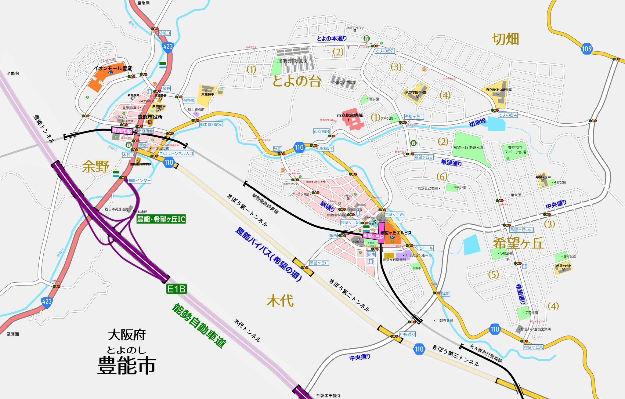 余野のあたりにはイオンモールが、能勢電の豊能市駅も!