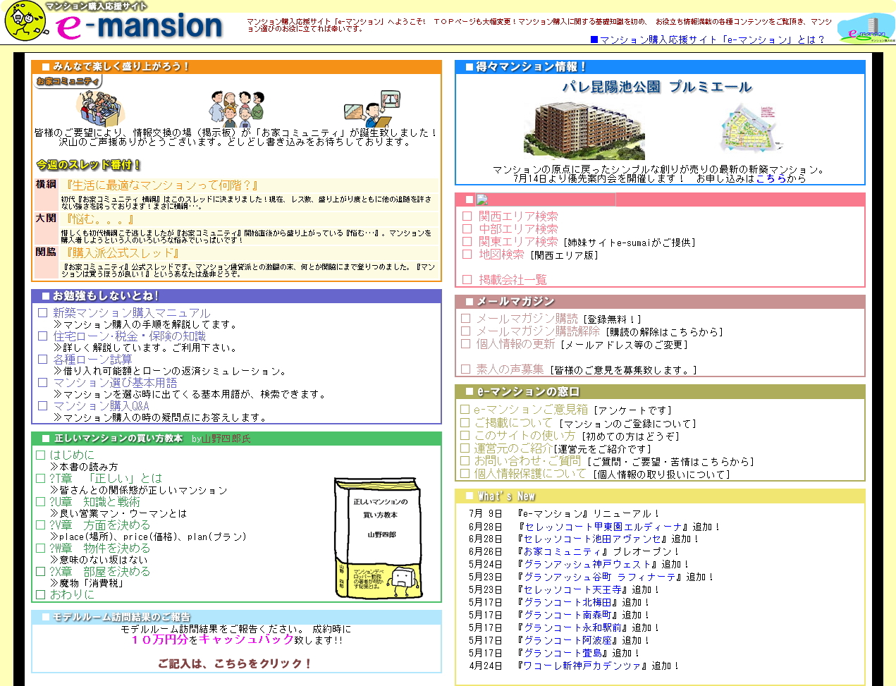 をコンセプトに、マンションに関する掲示板や基礎知識を紹介する日本初のマンションポータルサイトとしてオープン