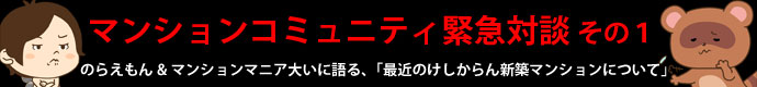 マンションコミュニティ緊急対談「のらえもん&マンションマニアが語る、最近のけしからん新築マンションについて」その1
