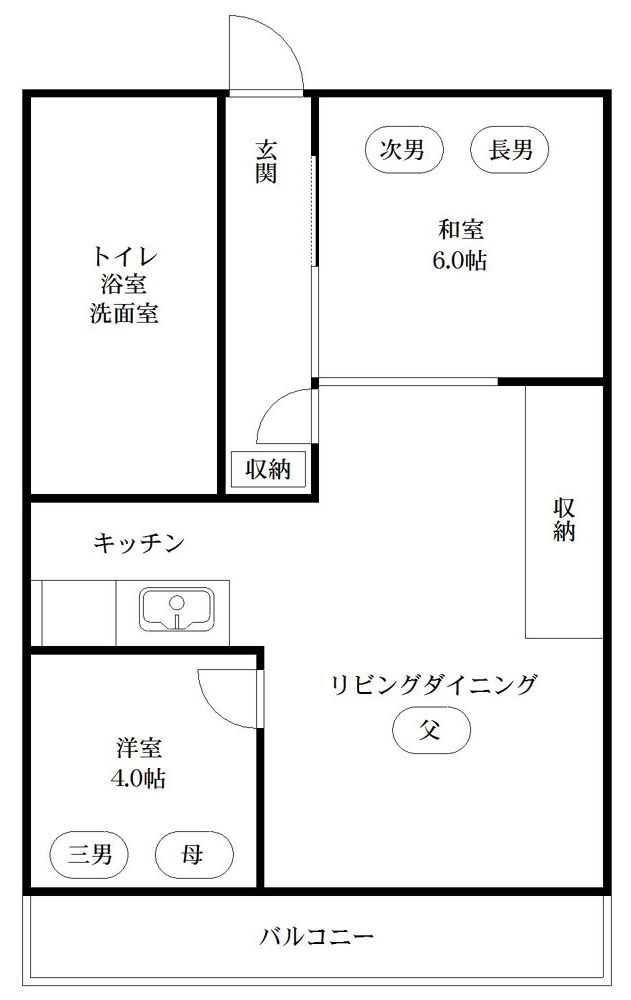 【のらえもん】 洋室4畳でお母さんと三男が寝るのもすごいですけど、お父さんはもはやペット扱いですね。