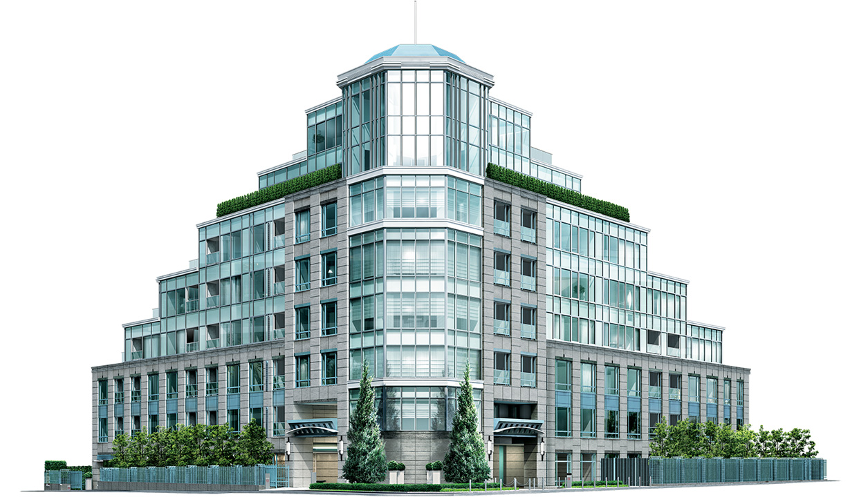 建物はヨーロッパで開発された建築技法を国内で初めて採用しています。石を思わせるような重厚なフォルムを特徴としており、低層部は上昇感や広がりを、上層階はモダンでスタイリッシュなフォルムが演出されています。風除室・エントランスロビー・エレベーター・住戸玄関にそれぞれセキュリティゾーンが設けられ、4重のセキュリティシステムにより住民の暮らしをより安全にしています。また、管理会社と警備会社による24時間体制のセキュリティも安心感を高める重要なポイントです。
